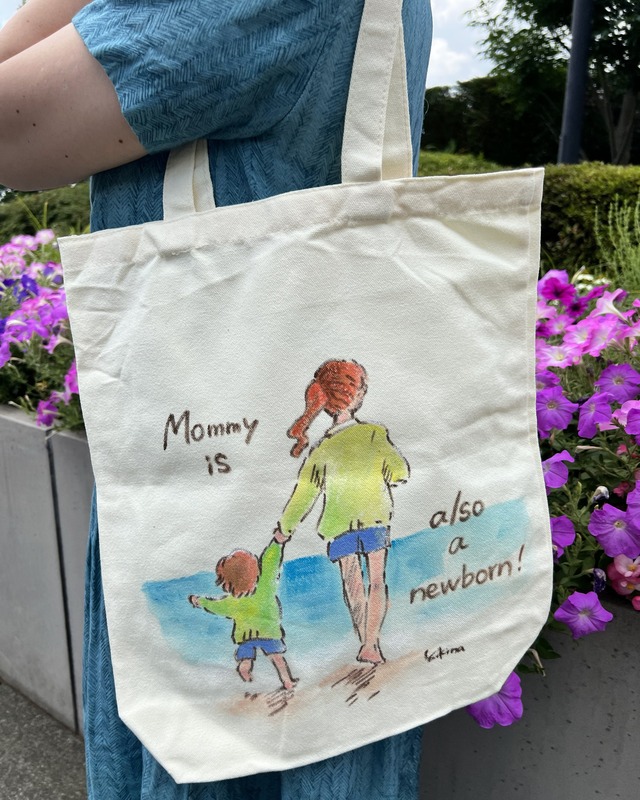 手描きトートバッグ Mommy is also a newborn. 〜ママも生まれたばかり〜