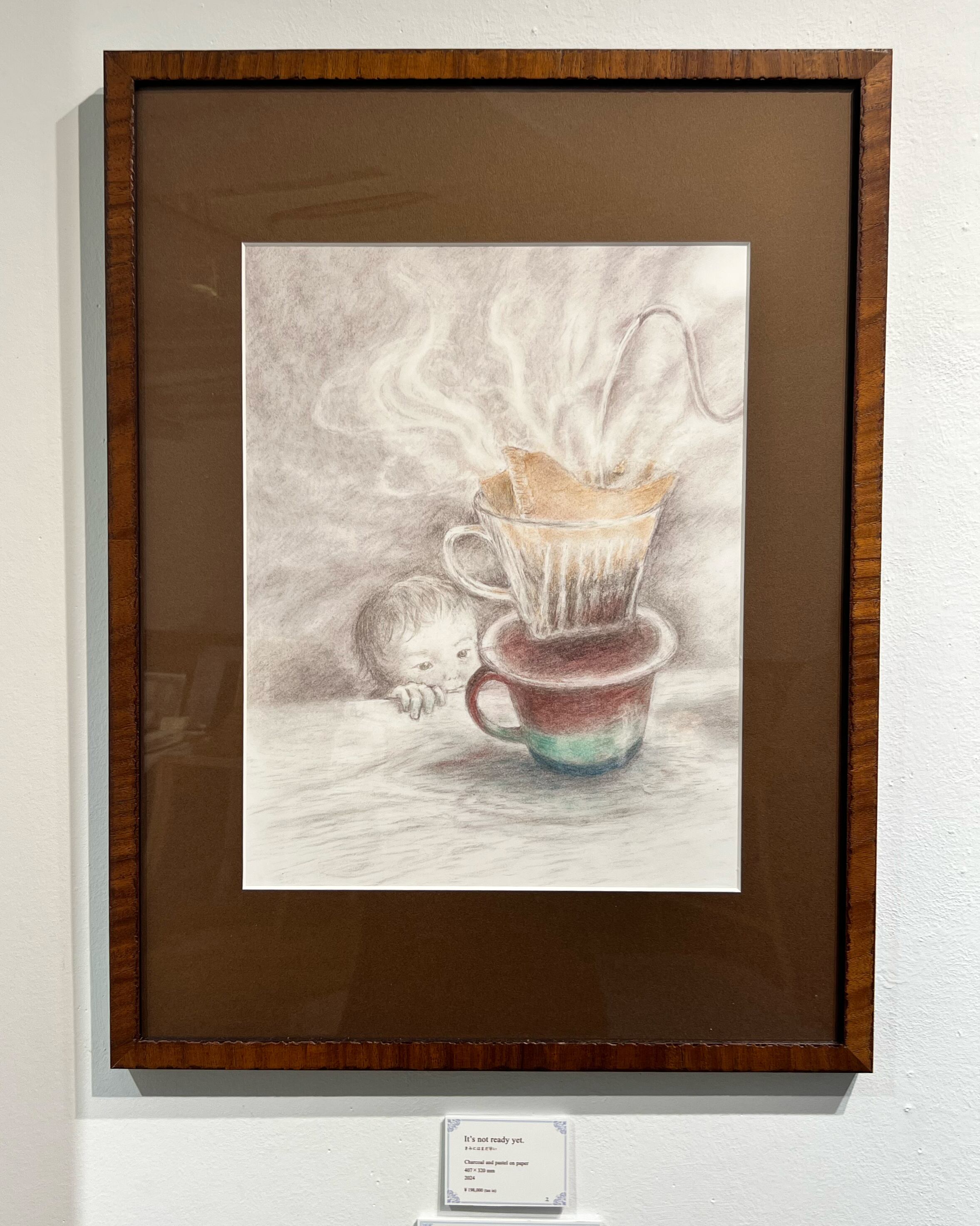 コーヒーに興味津々の1歳の息子のスケッチ。